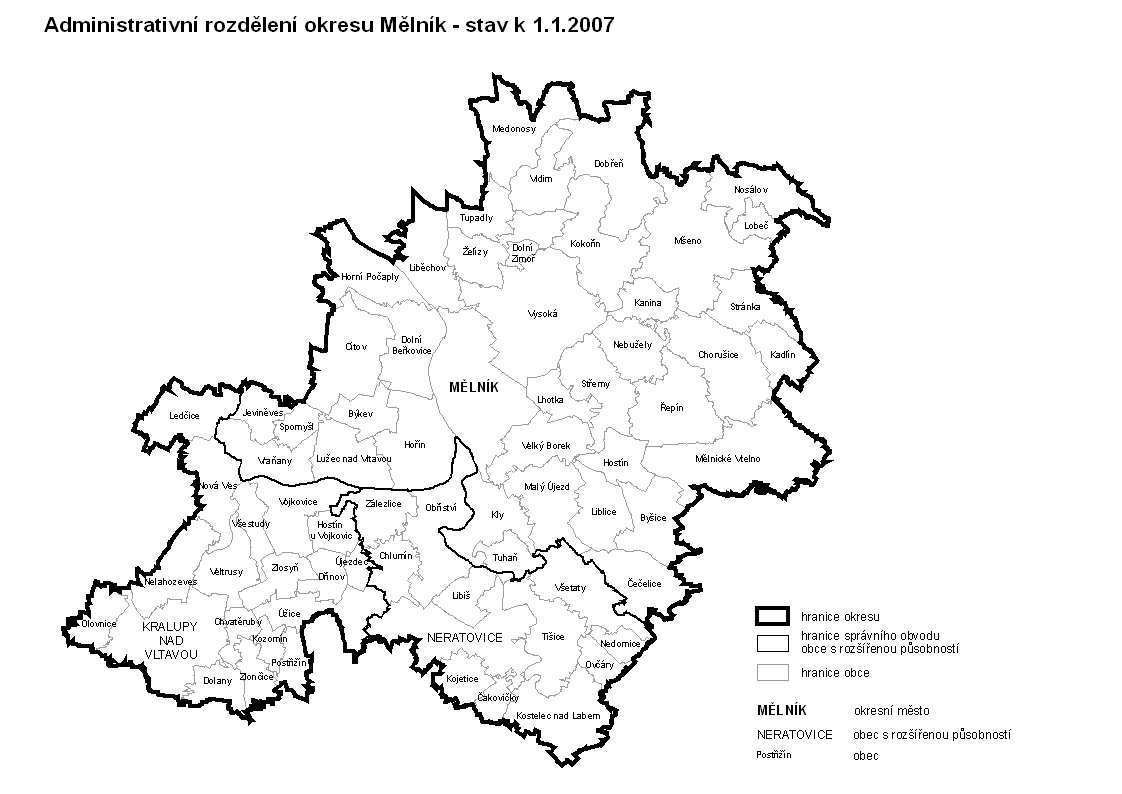 Území okresu Mělník leží v severní části středních Čech a je rozloženo téměř souměrně kolem soutoku Labe a Vltavy. Svojí jižní hranicí sousedí s oběma pražskými okresy, na západě s Kladenskem, na východě s Mladoboleslavskem, na severozápadě s okresem Litoměřice (Ústecký kraj) a na severu s okresem Česká Lípa (Liberecký kraj). V okrese je registrováno 55 SDH s 2717 členy. Aktivních dobrovolných jednotek PO je v okrese 46.